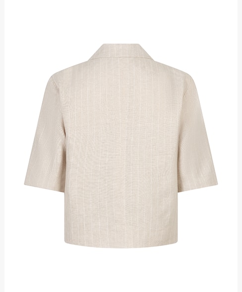 Red Button Short-Sleeve Linen Blazer in Pebble