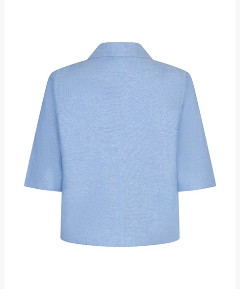 Red Button Short-Sleeve Linen Blazer in Light Blue