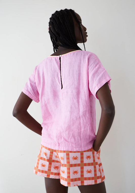 Sold outDr Bloom Flake Linen Blouse in Rosa