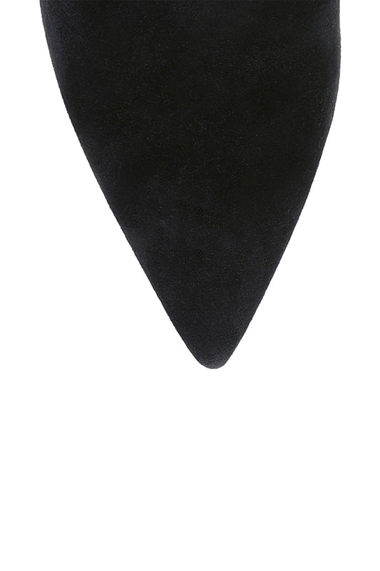Suede Kitten Heeled Pointed Toe Ankle Boots in Black