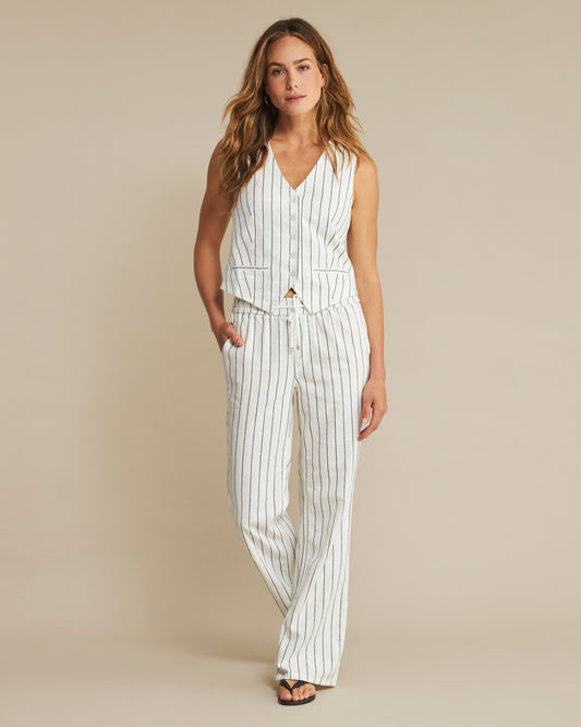 Red Button Collette Linen Trousers in Navy Stripe