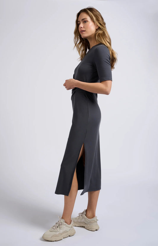 Short-sleeve Midi Dress in Anthracite