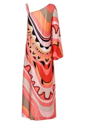 Experience the bold and beautiful design by Ana Alcazar. With its unique asymmetric cut and vibrant multi coloured pattern, this one-shoulder maxi dress is sure to make a statement. Made with high-quality materials for a comfortable fit, this calf-length dress is perfect for any occasion. Embrace your individual style and stand out in this stunning piece from Ana Alcazar!