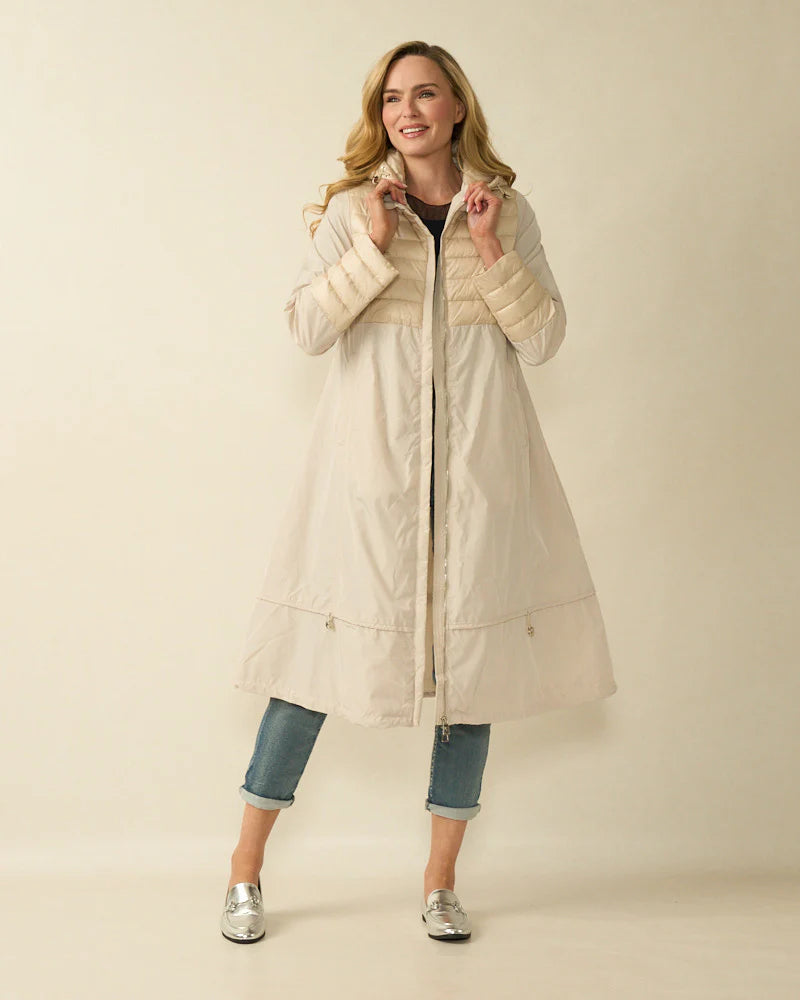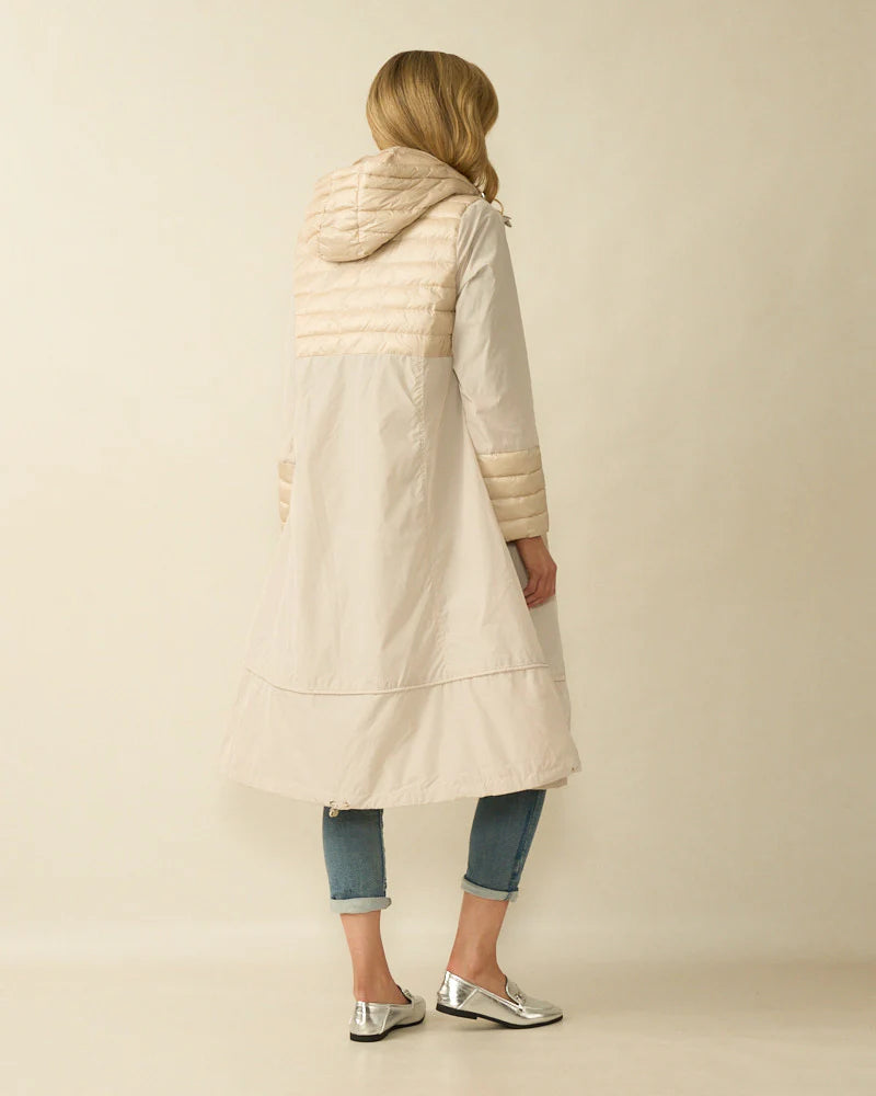 Stay stylish and comfortable in any weather with our Deck By Decollage Lightweight Coat in Beige. Featuring a convenient hood and padded detailing, this sleek coat provides added warmth without weighing you down. Perfect for any occasion, stay prepared and fashionable with this must-have coat.