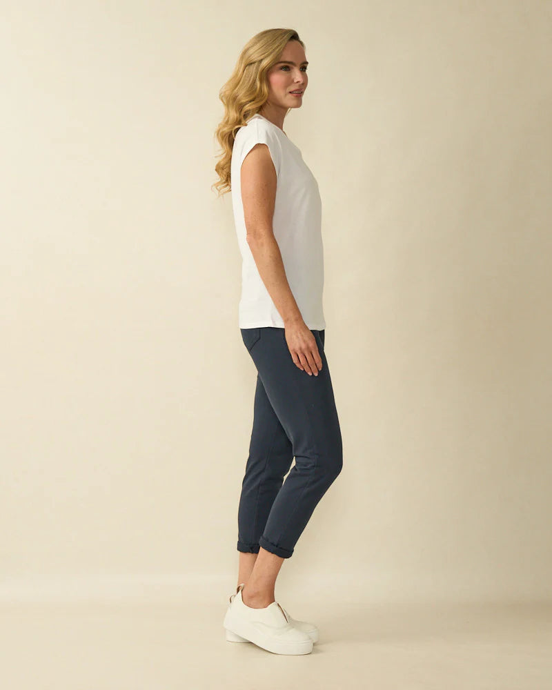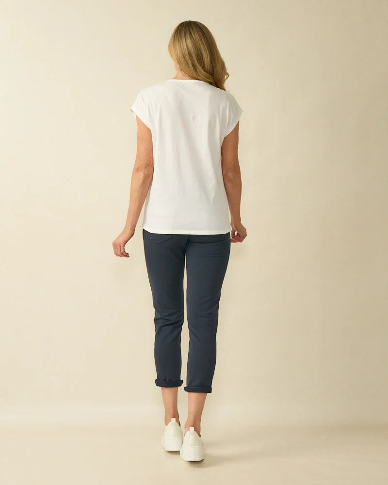 Introducing the Deck By Decollage Piper T-Shirt in White! Made of soft cotton, this cap sleeve t-shirt offers both comfort and style. Perfect for any casual or sporty look, it's a must-have addition to your wardrobe. Show off your fashion sense with this versatile and trendy t-shirt.