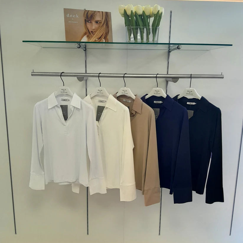 Experience style and comfort with our Deck By Decollage Collared Shirt in Navy! Made with a stretch collar and cuffs, this shirt offers a perfect fit for any occasion. Dress it up or down, and feel confident in your look. Upgrade your wardrobe now!