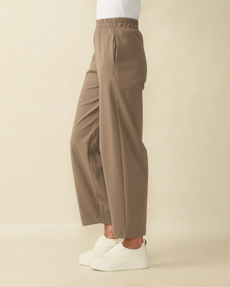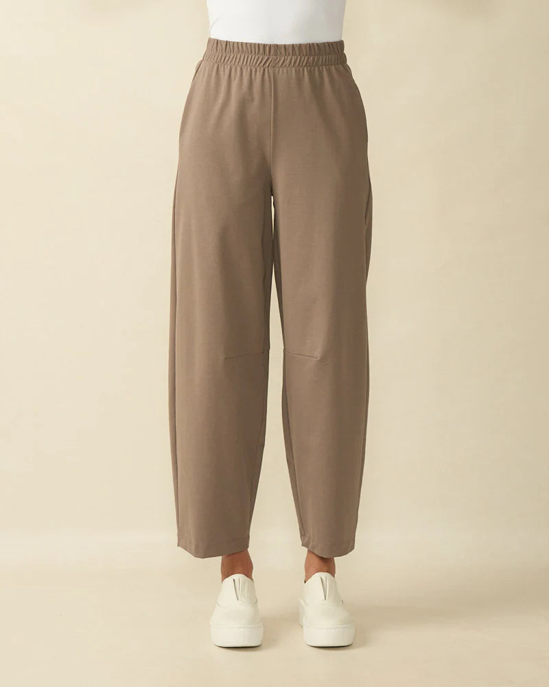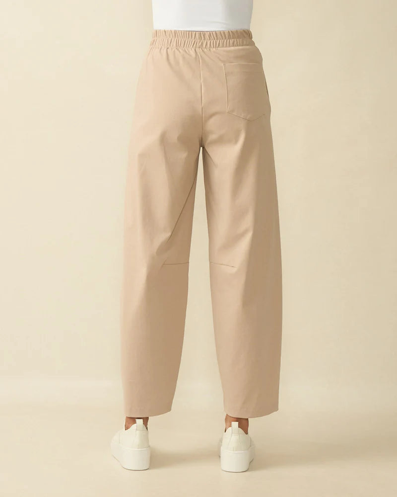 Introducing the Deck By Decollage Leisure Trousers in Beige! These trousers feature a unique seam detail, adding a touch of style to your casual wardrobe. Comfortable and versatile, they are perfect for any leisure activity. Available now in beige.