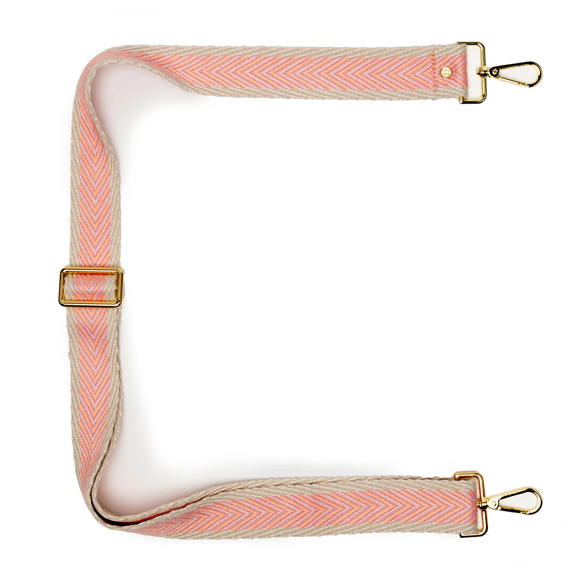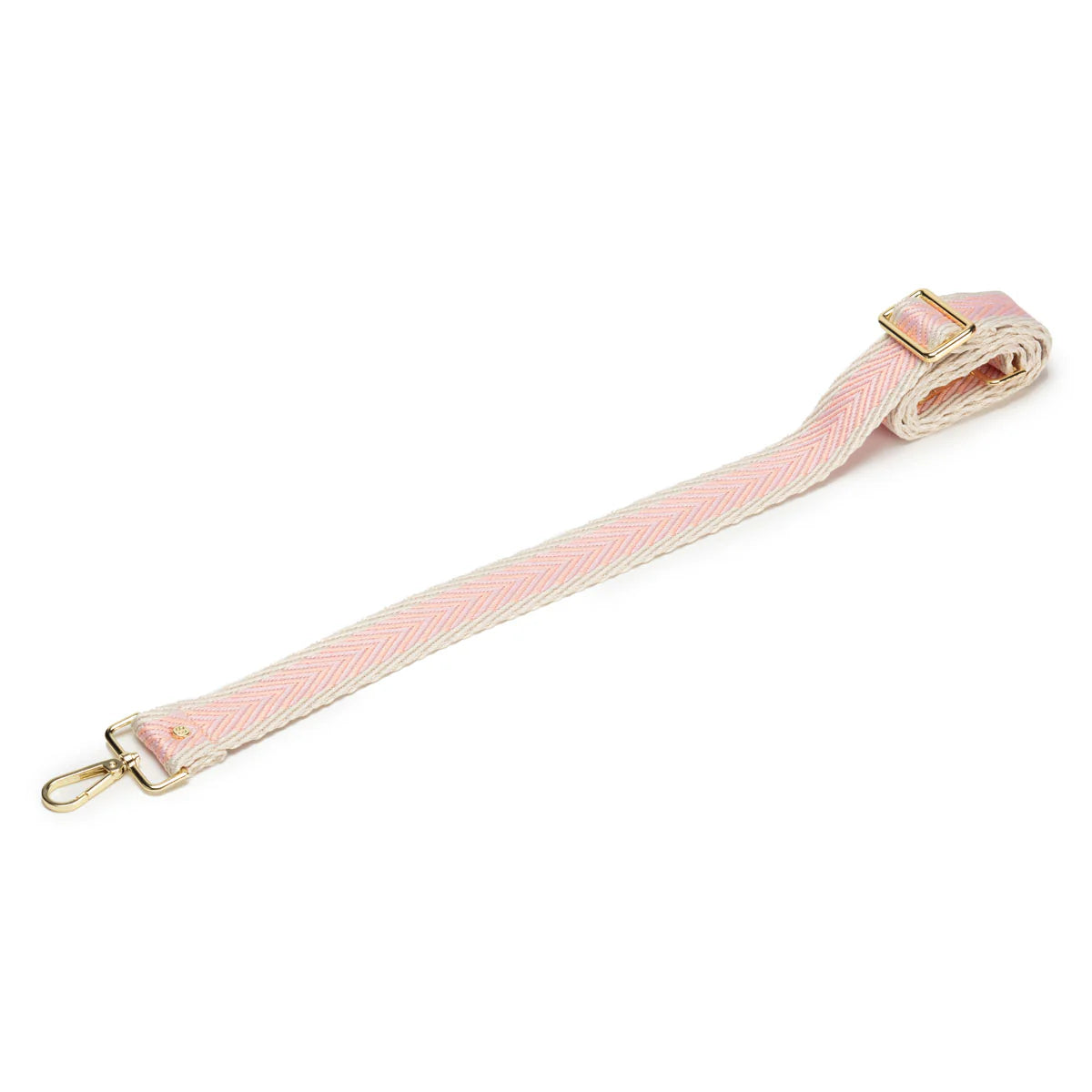 Transform your bag with the Elie Beaumont Pink Chevron Bag Strap! This stunning strap adds a touch of individuality to your look. With fully adjustable straps, you can wear your bag as a crossbody or on the shoulder. The light gold fittings and embossed logo studs add a touch of luxury to any outfit.