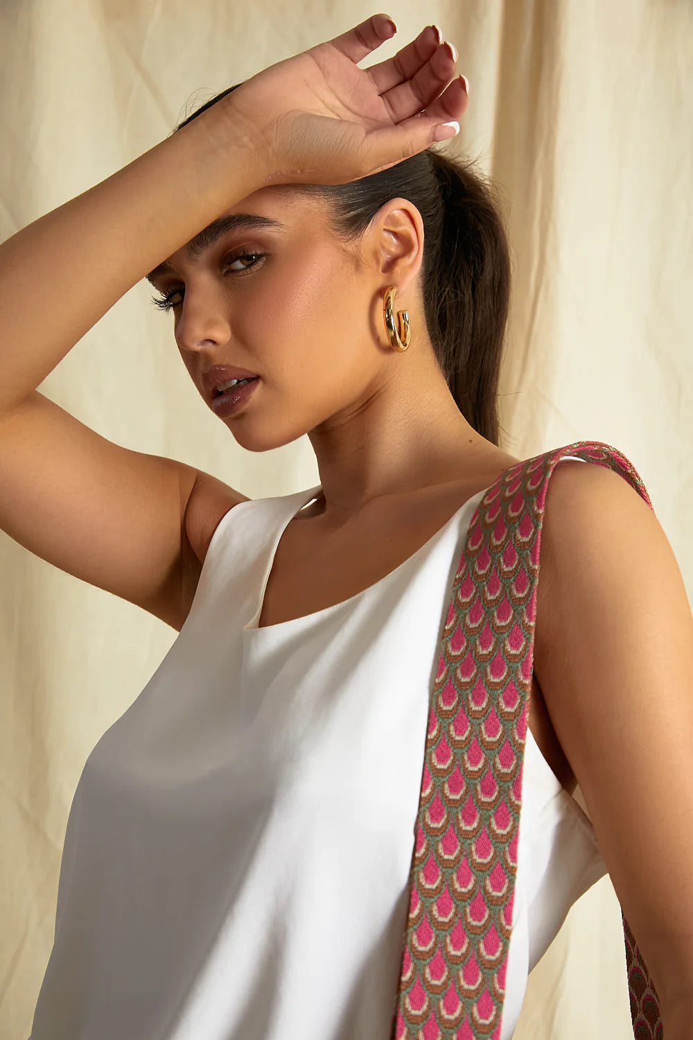 Eli-Peacock crossbody straps tan/pink