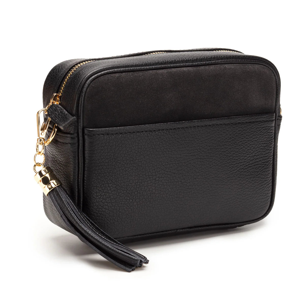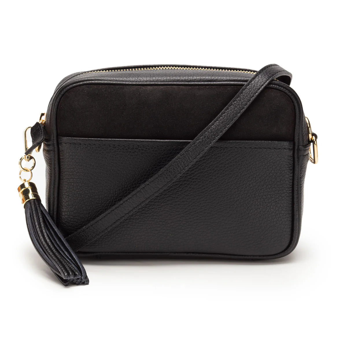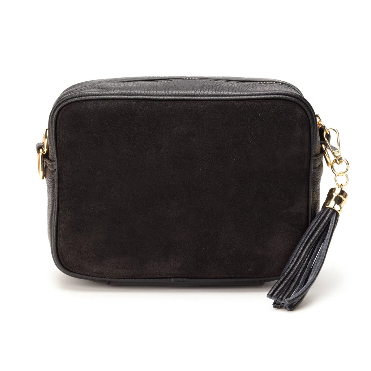 The Elie Beaumont Suede Crossbody Bag in classic black is the perfect day-to-night bag. Made from genuine premium leather in Italy, it features a matching shoulder strap and removable tassel for versatile styling. The full length external pocket adds convenience to this stylish and timeless accessory.