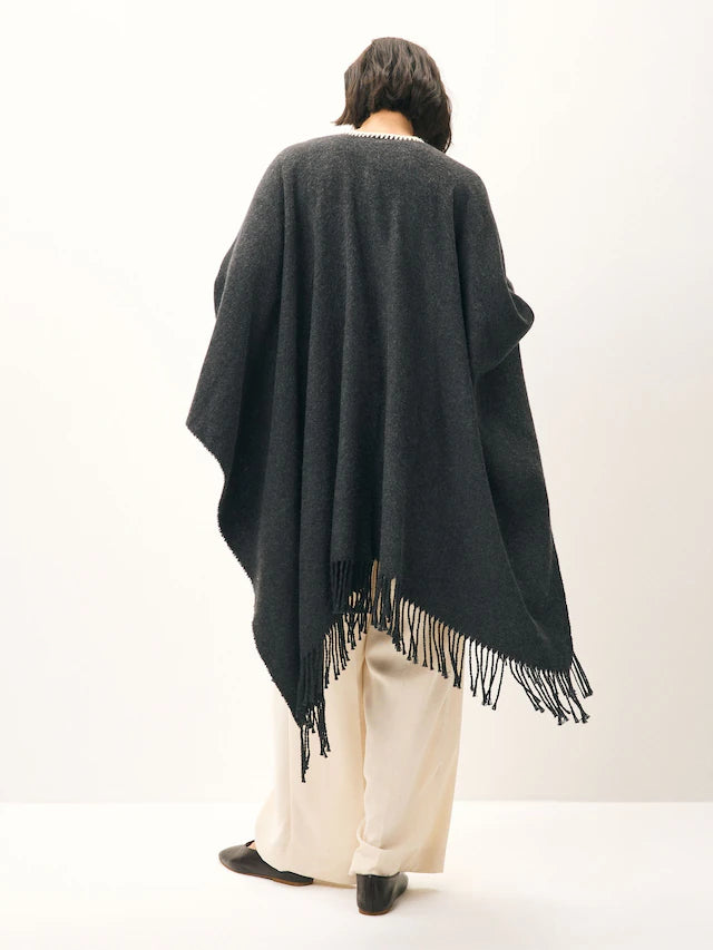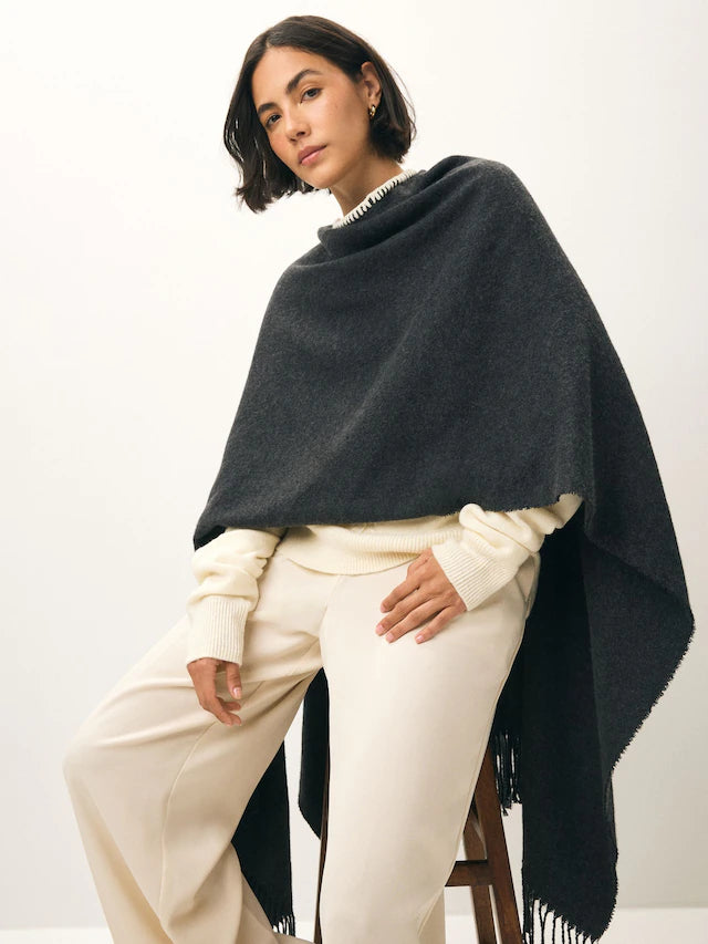 Wrap yourself in the Emme Marella Heidi Shawl in Charcoal, an ideal companion for crisp autumn evenings. Its soft, cozy fabric provides warmth without bulk, making it perfect for layering. The elegant charcoal shade complements any outfit, adding a touch of sophistication while keeping you comfortable as temperatures drop. Embrace the season in style and comfort with this versatile shawl.