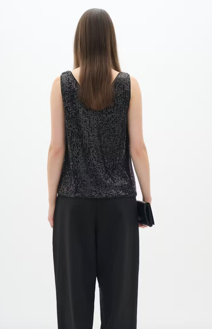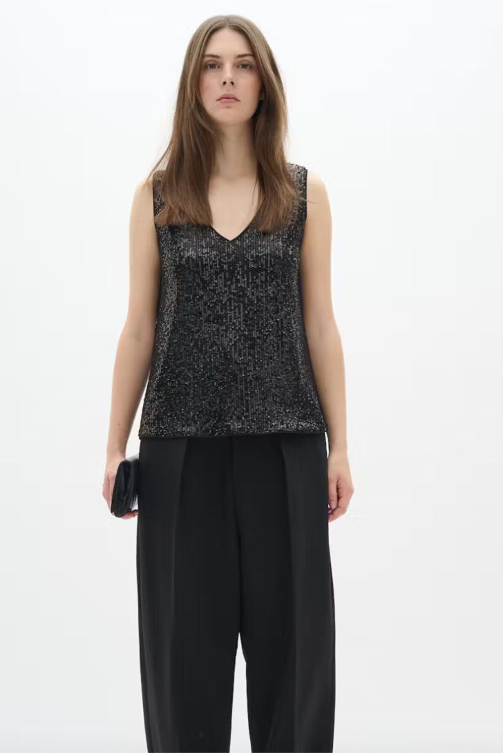 Elevate your style with the Barbara Sequin Top by Inwear. This sleeveless top features a dazzling black sequin design that adds a touch of glamour to any outfit. Stand out from the crowd and shine bright in this stylish piece!