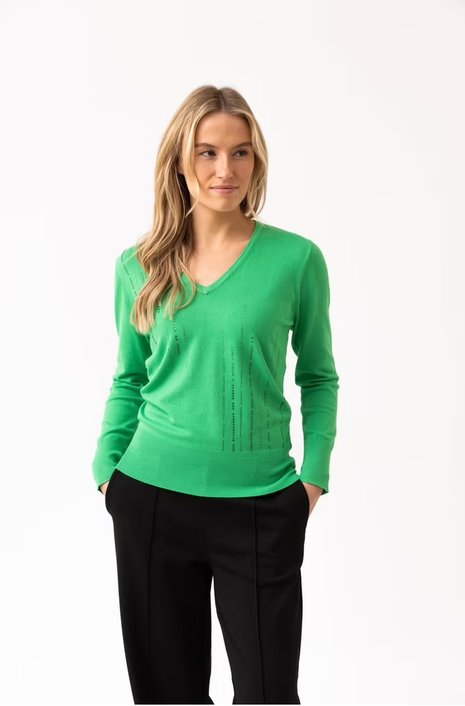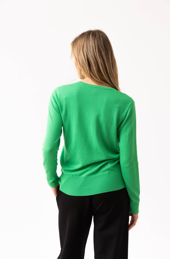The Marble V-Neck Sweater in Green offers a fresh, vibrant addition to your wardrobe. Crafted with care by Marble, its flattering V-neck design enhances your silhouette while providing cozy comfort. Perfect for layering or wearing on its own, this sweater combines style and versatility for any occasion.