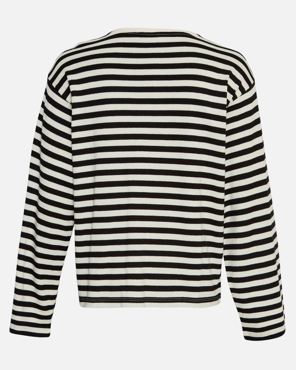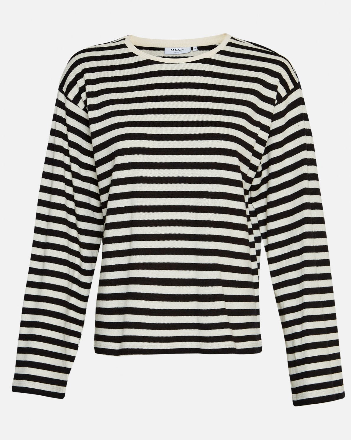 Moss Copenhagen's Bahara is a light, long sleeve pullover with black horizontal stripes. It is a classic crewneck top, which can be an effortless edition to any outfit, and a strong foundation for a versatile wardrobe, as it can be styled in many ways. Combine with your go-to jeans, an easy-breezy summer skirt or elegant pants, it can make an effortlessly chic outfit in no seconds.