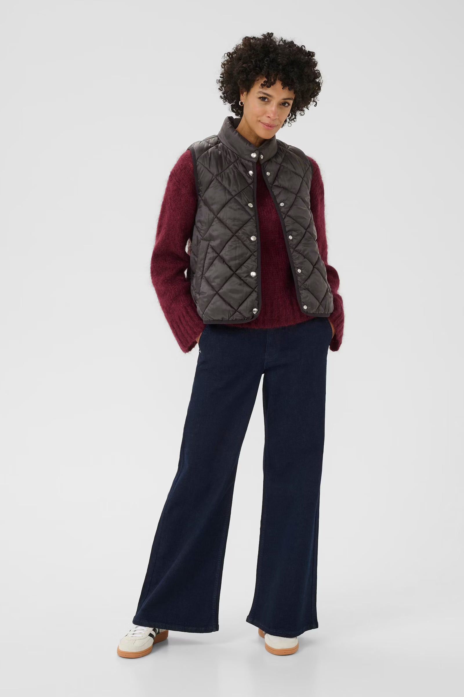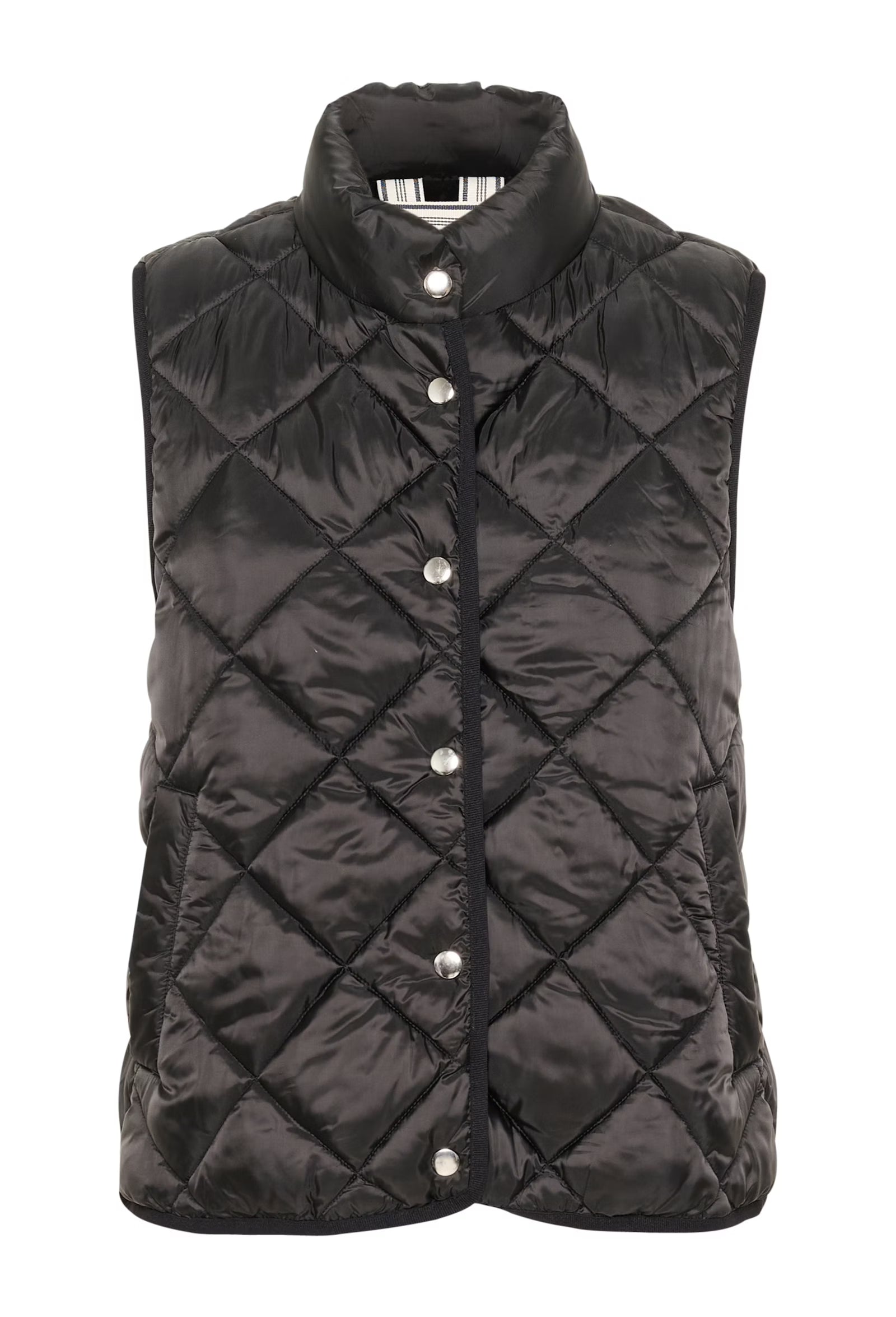 This quilted vest is the perfect layering piece for transitional weather. With a high collar and press-stud fastening, it offers both warmth and style. Wear it over a knit or under a coat for a versatile look.