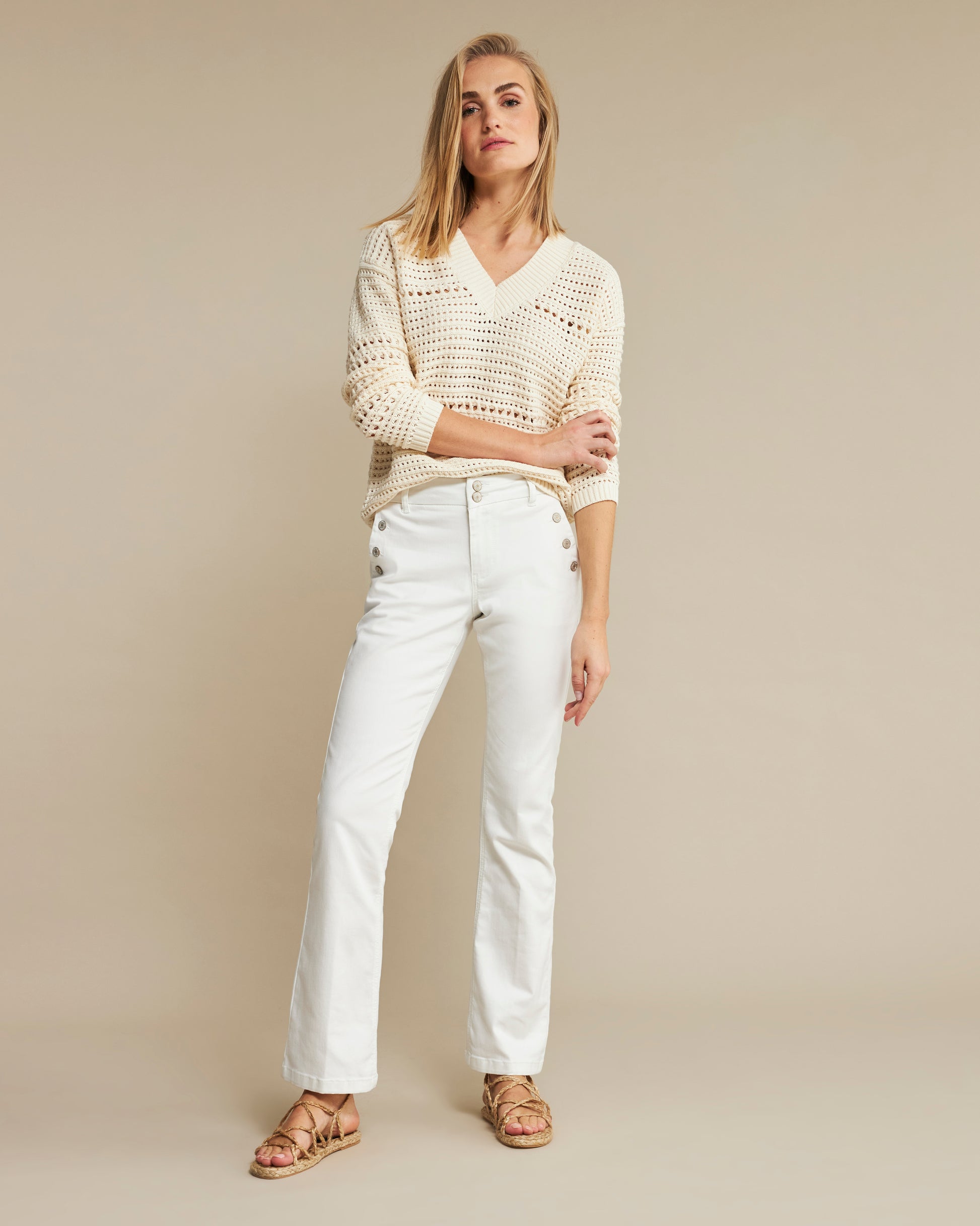 Red-Srb4508 Bibette denim with buttons high rise regular fit flare legs Ecru