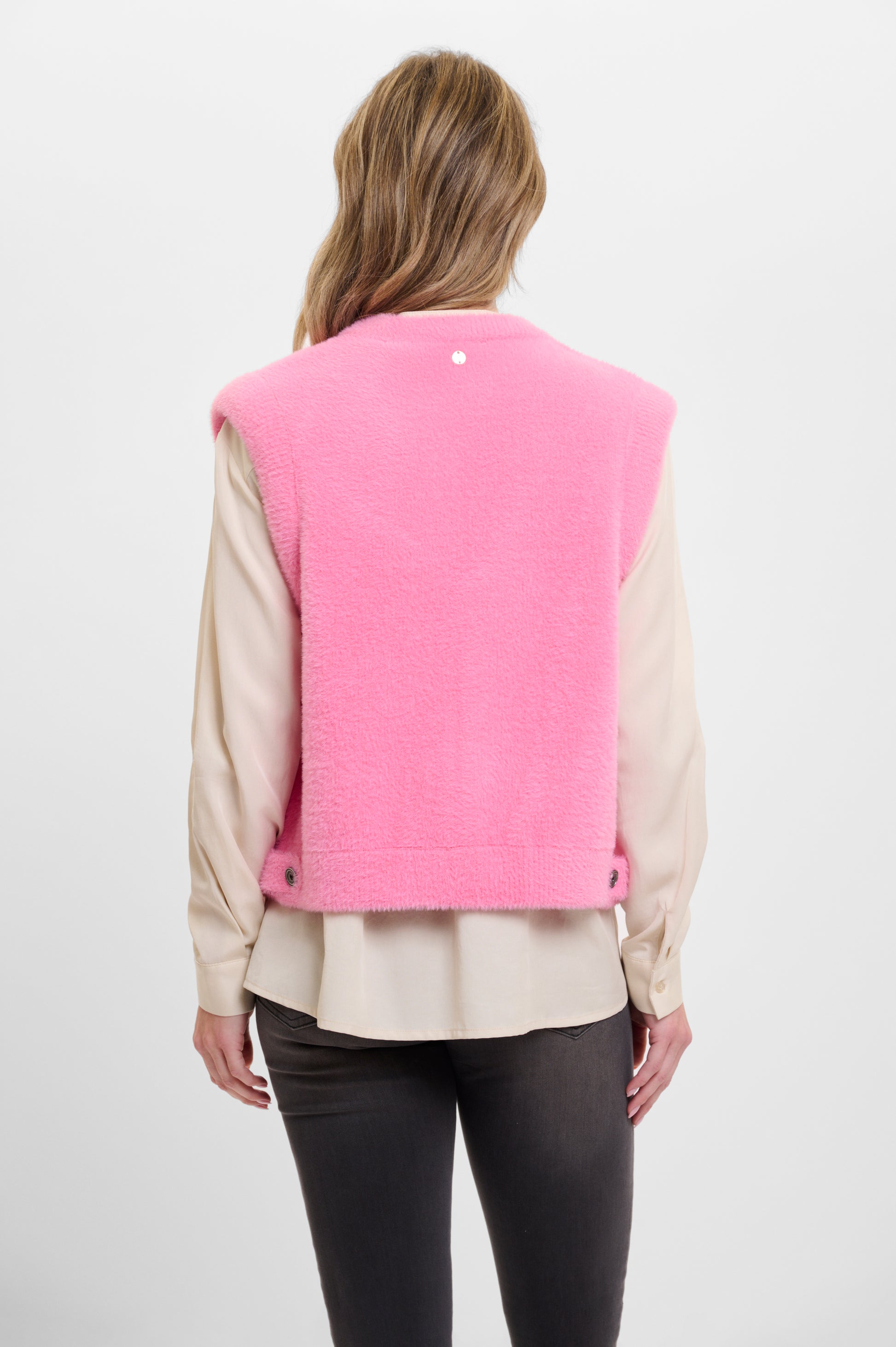 Elevate your style and stay cozy with the Elona Waistcoat in Bright Pink by Rino & Pelle. This essential piece boasts a soft and comforting design, complete with ribbed details for a modern touch. Stay warm and fashionable with this must-have addition to your wardrobe.