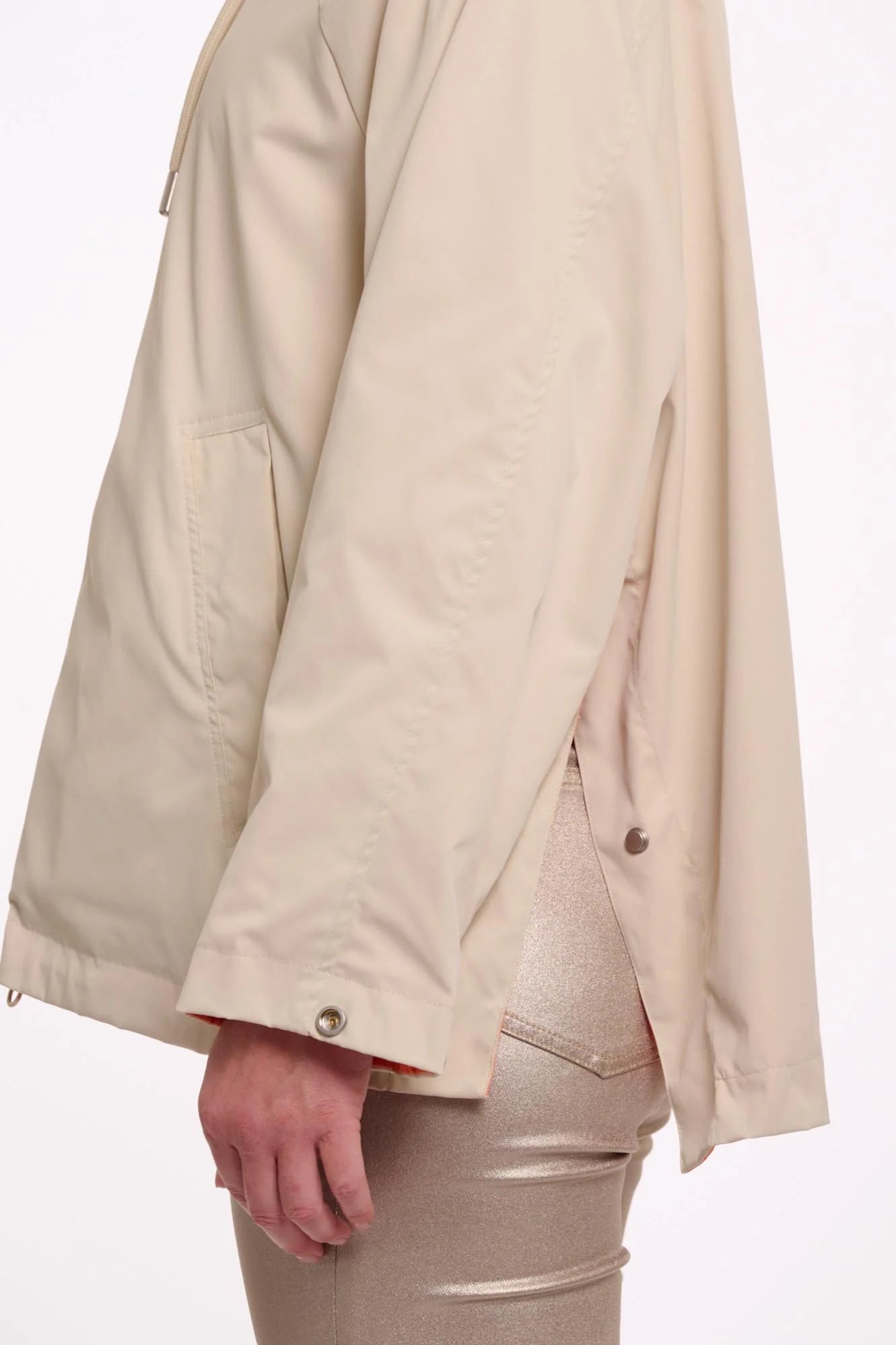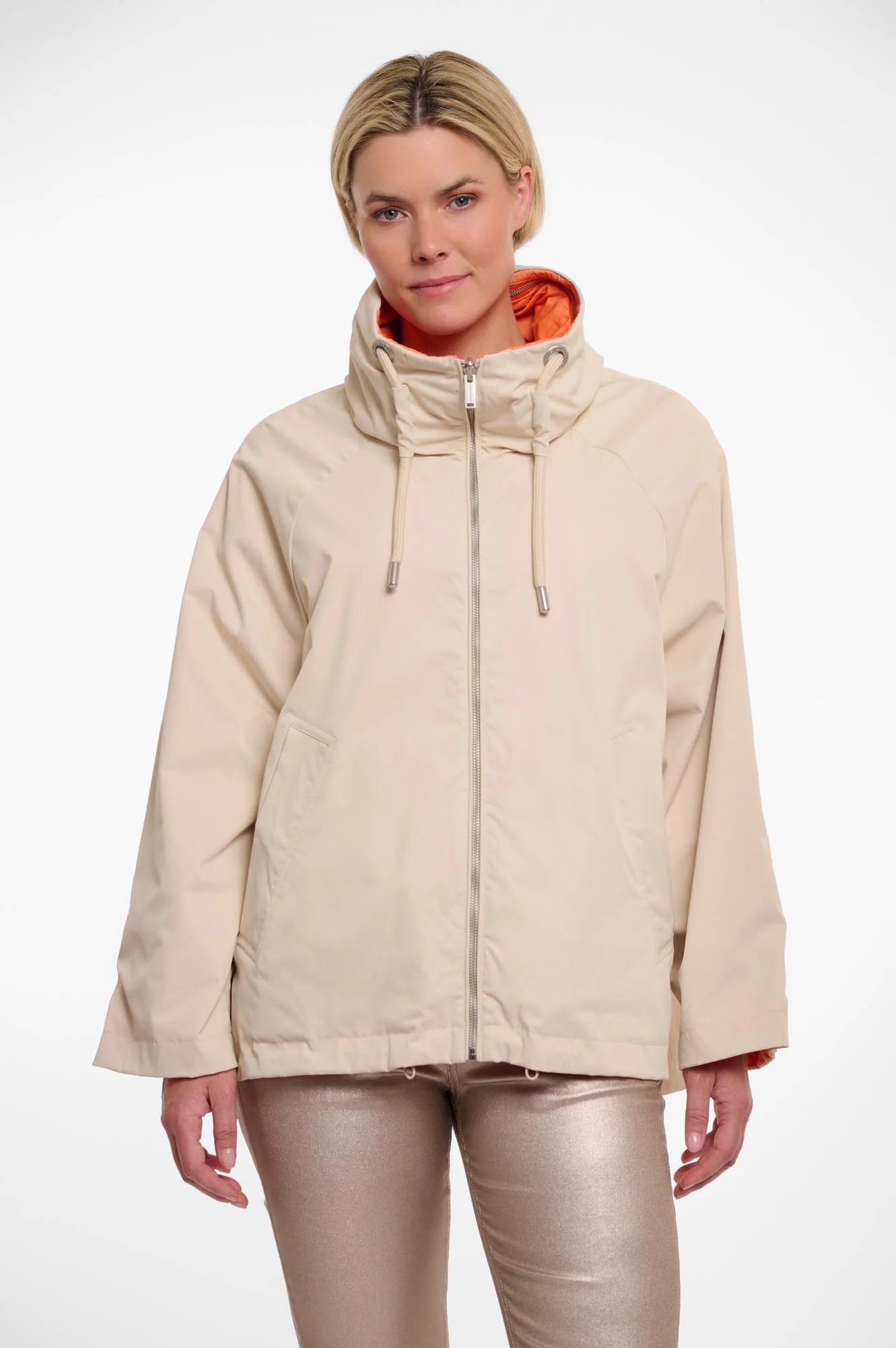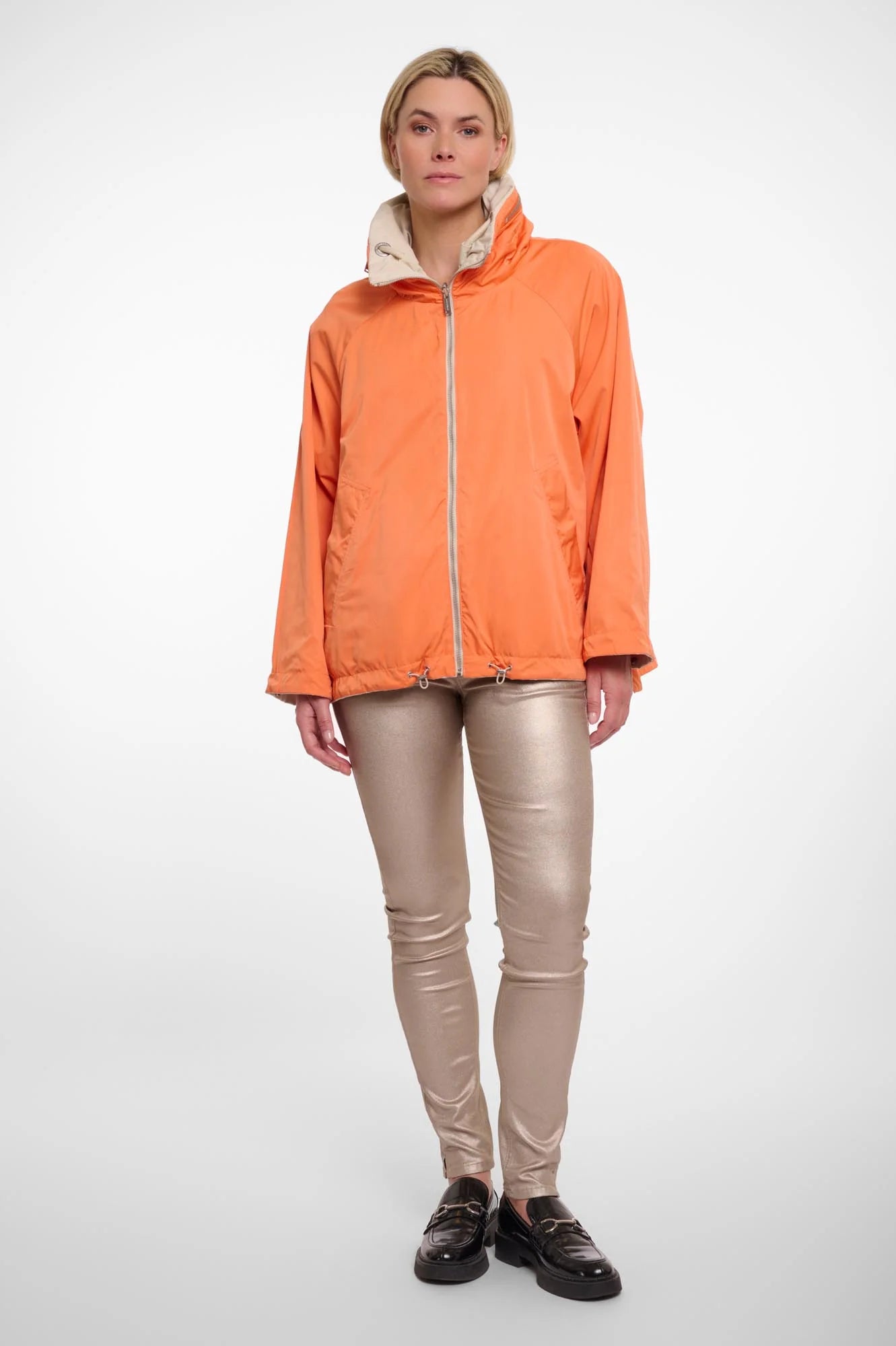 Embrace fashion and function with the Rino & Pelle Flossy Reversible Parker in Birch/Flash Orange. Versatile and stylish, this parka features a hidden hood in the collar and drawstrings for a customizable fit. With a zipper closure, side slit pockets, and push button closures, this parka is the perfect addition to your wardrobe.