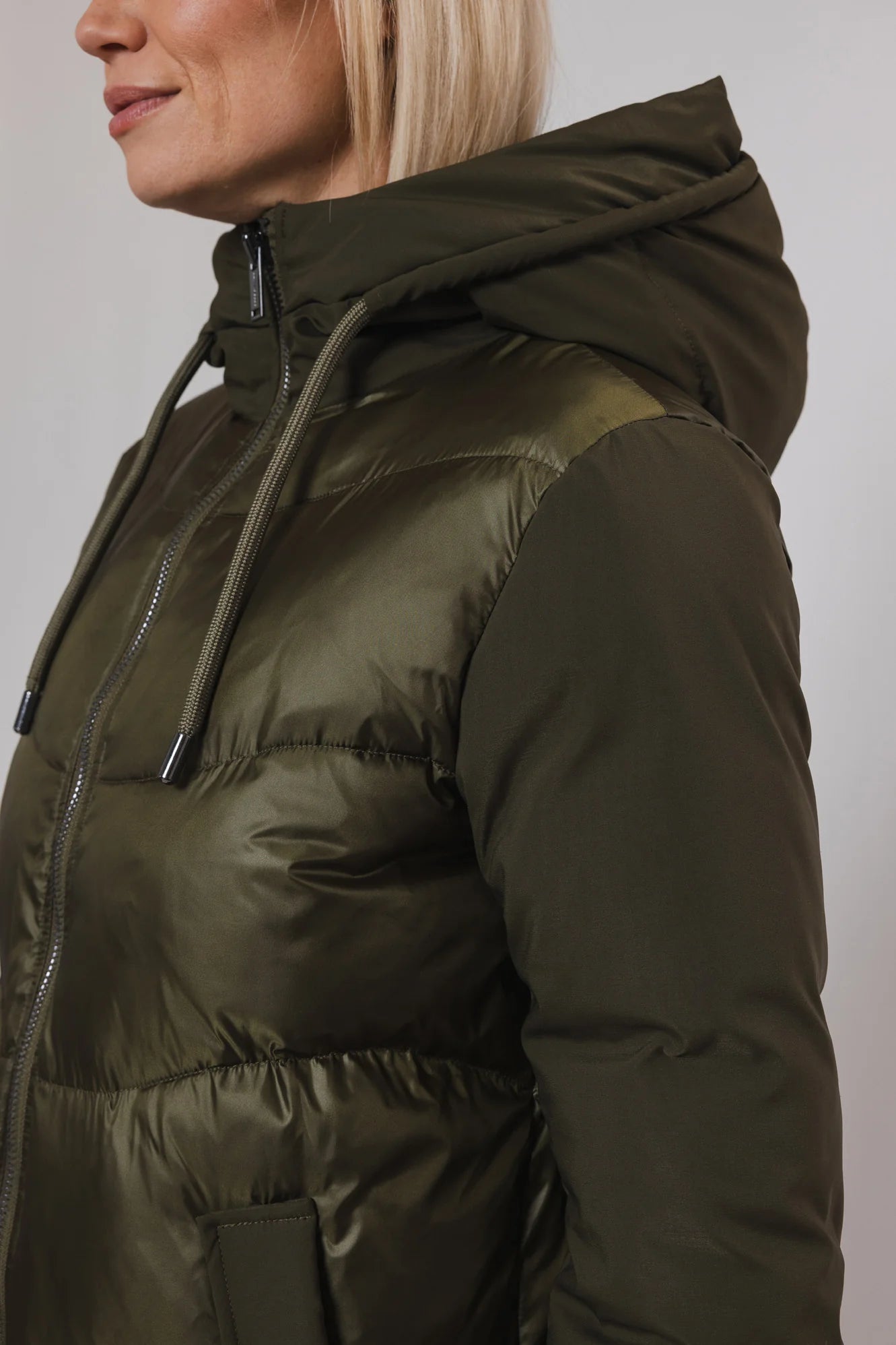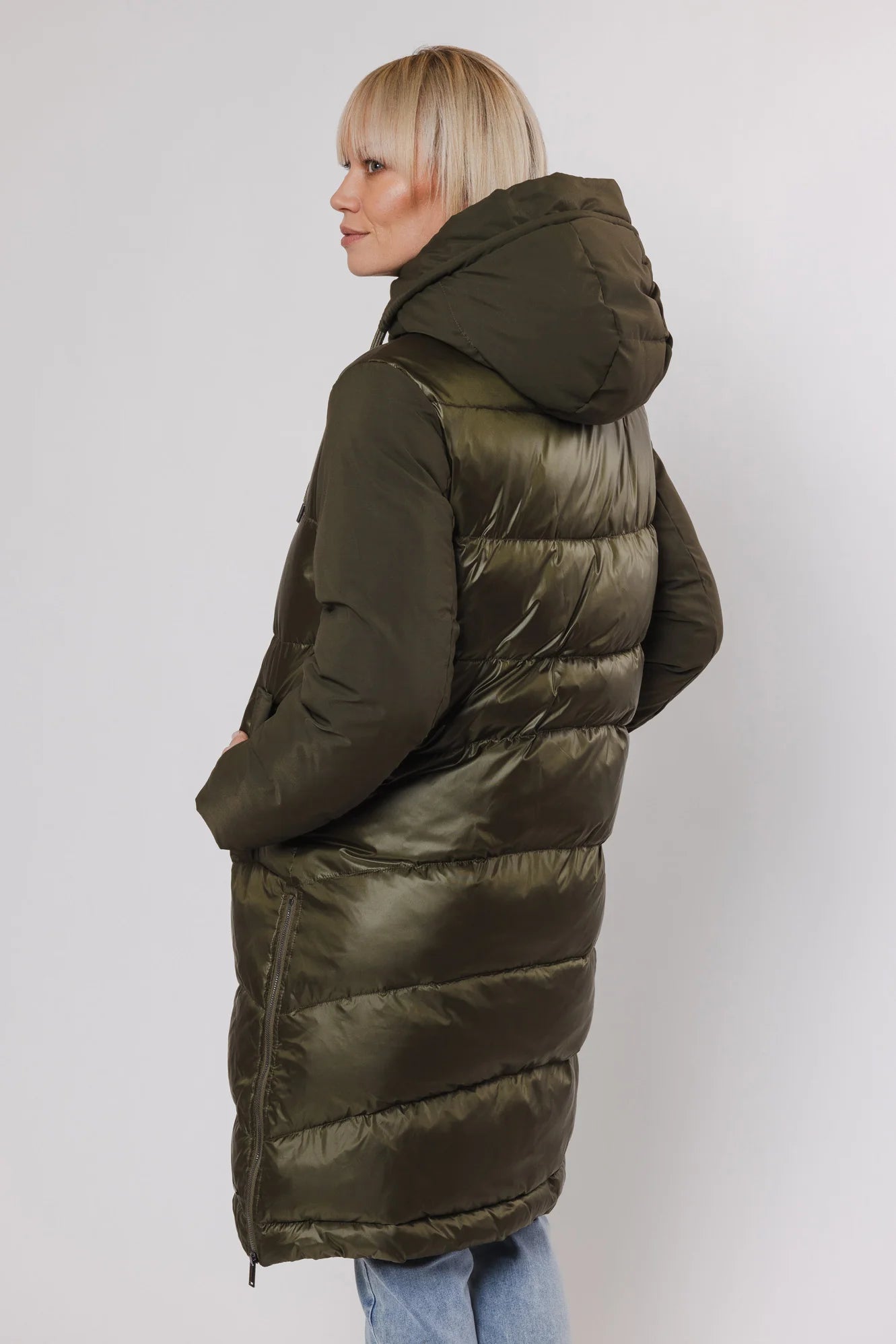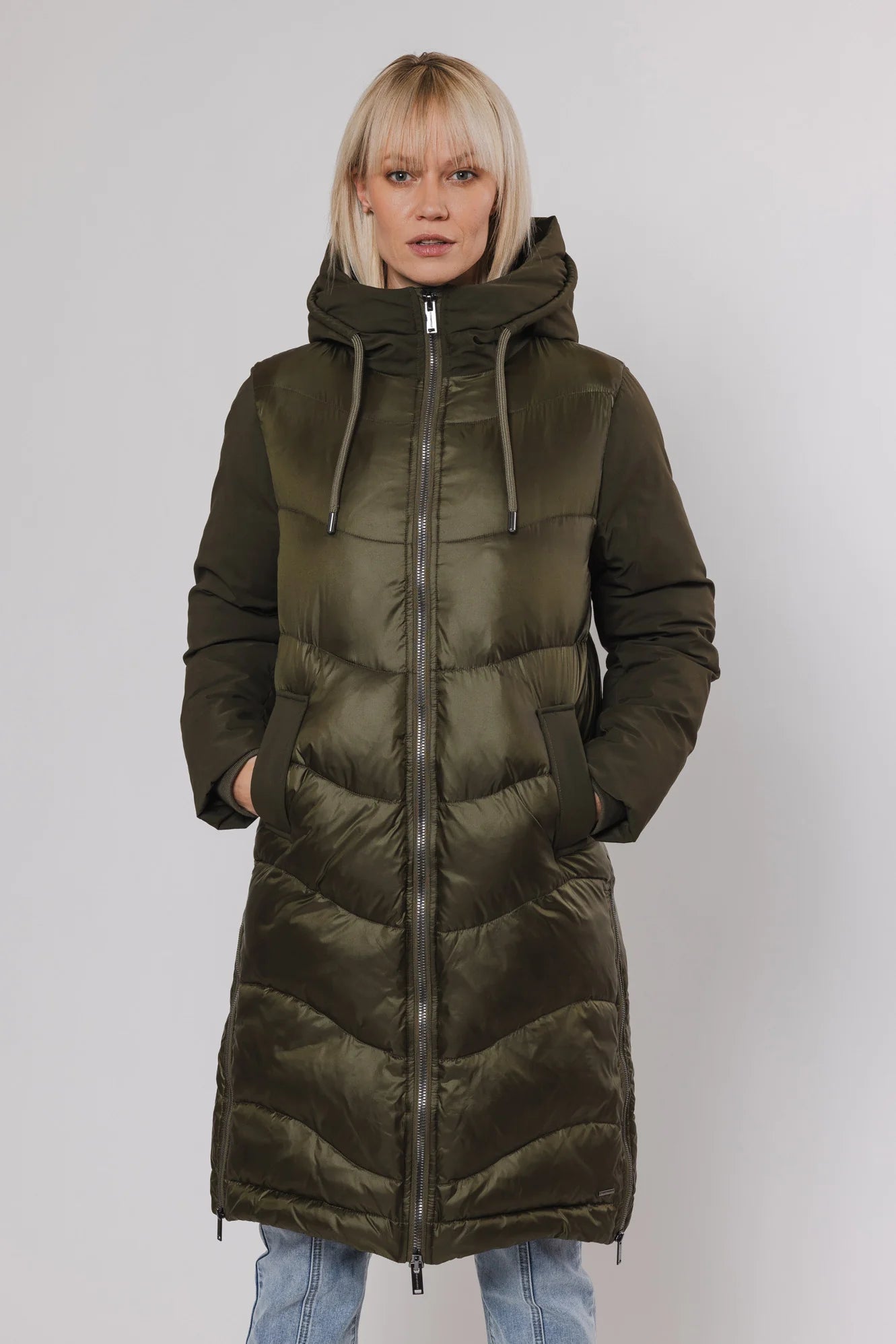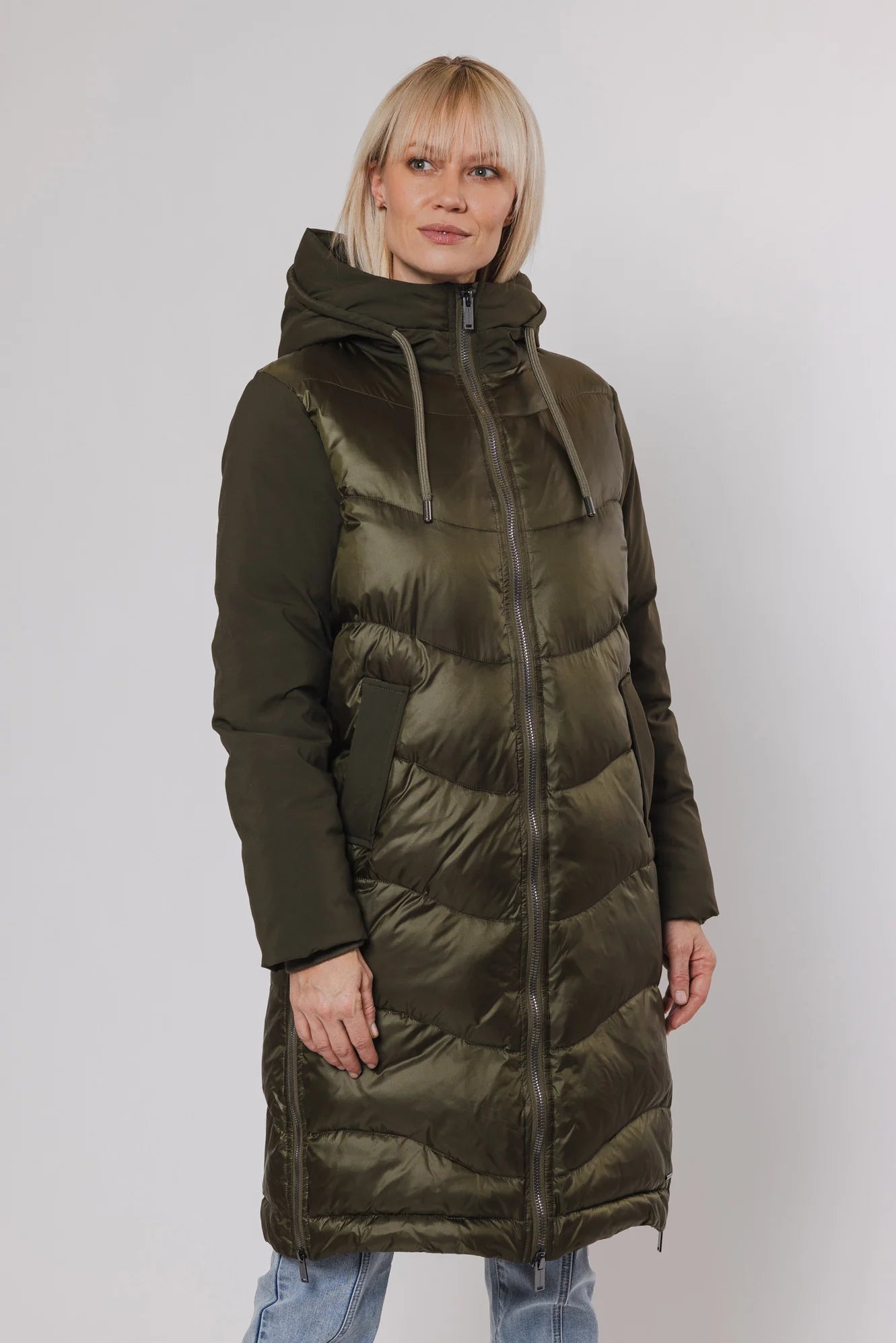 Stay warm and stylish in the Masja Puffa Coat by Rino & Pelle. This longline, hooded coat features a zip-up design and is padded for extra warmth. Perfect for braving the cold while staying fashionable.