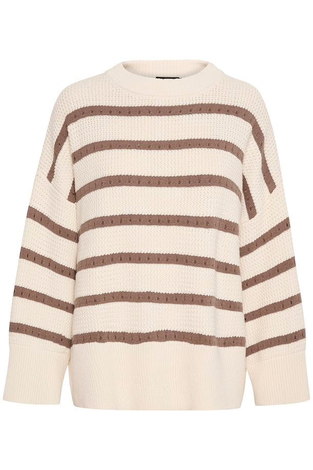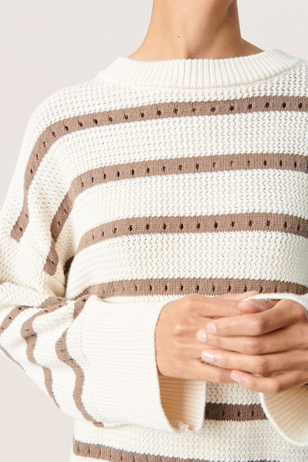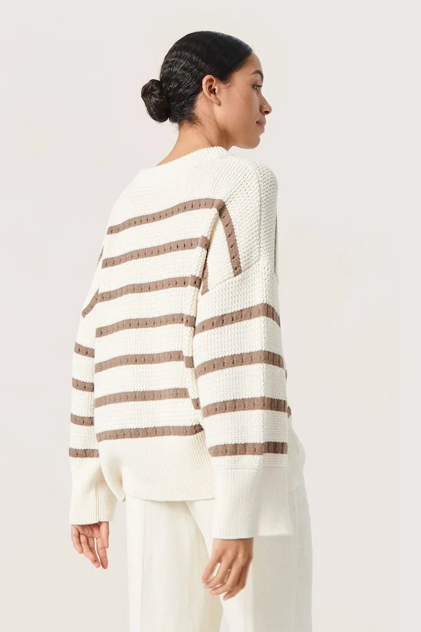 Striped Knit Sweater in White/Walnut