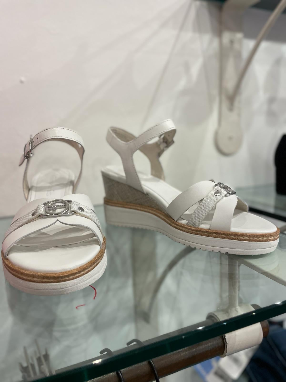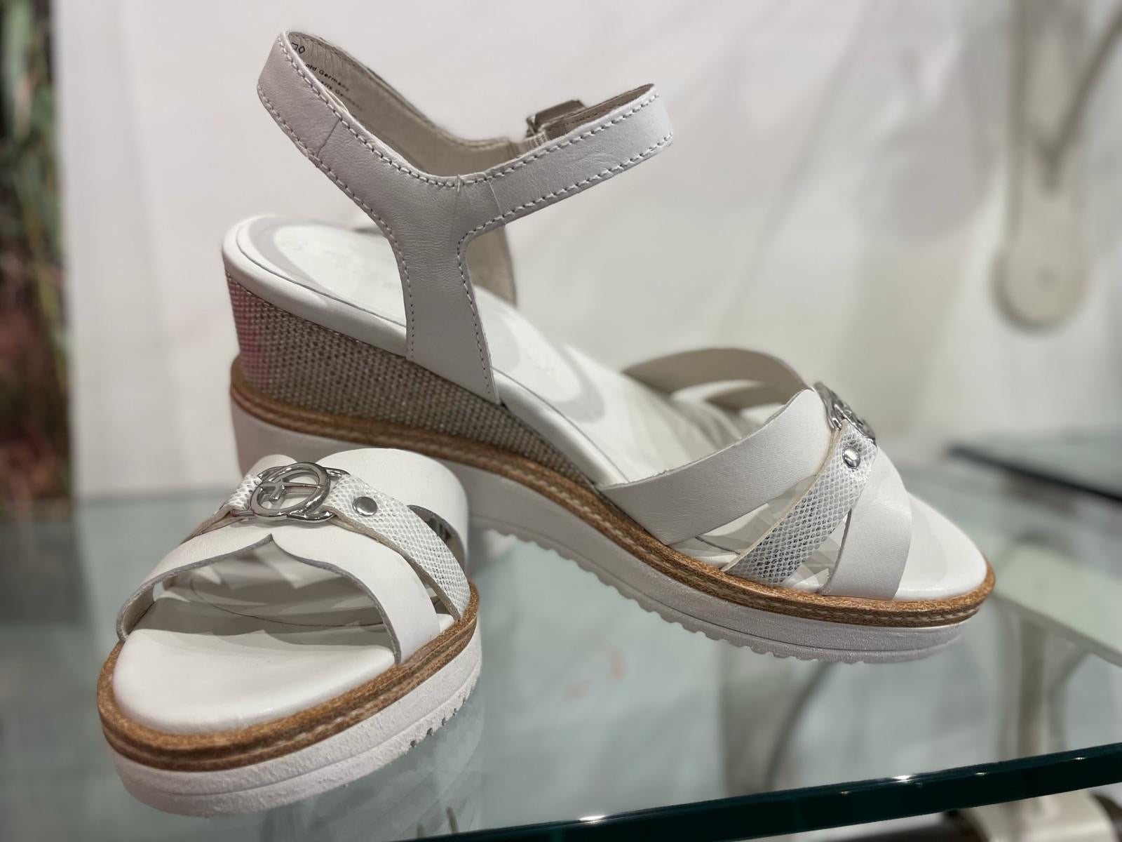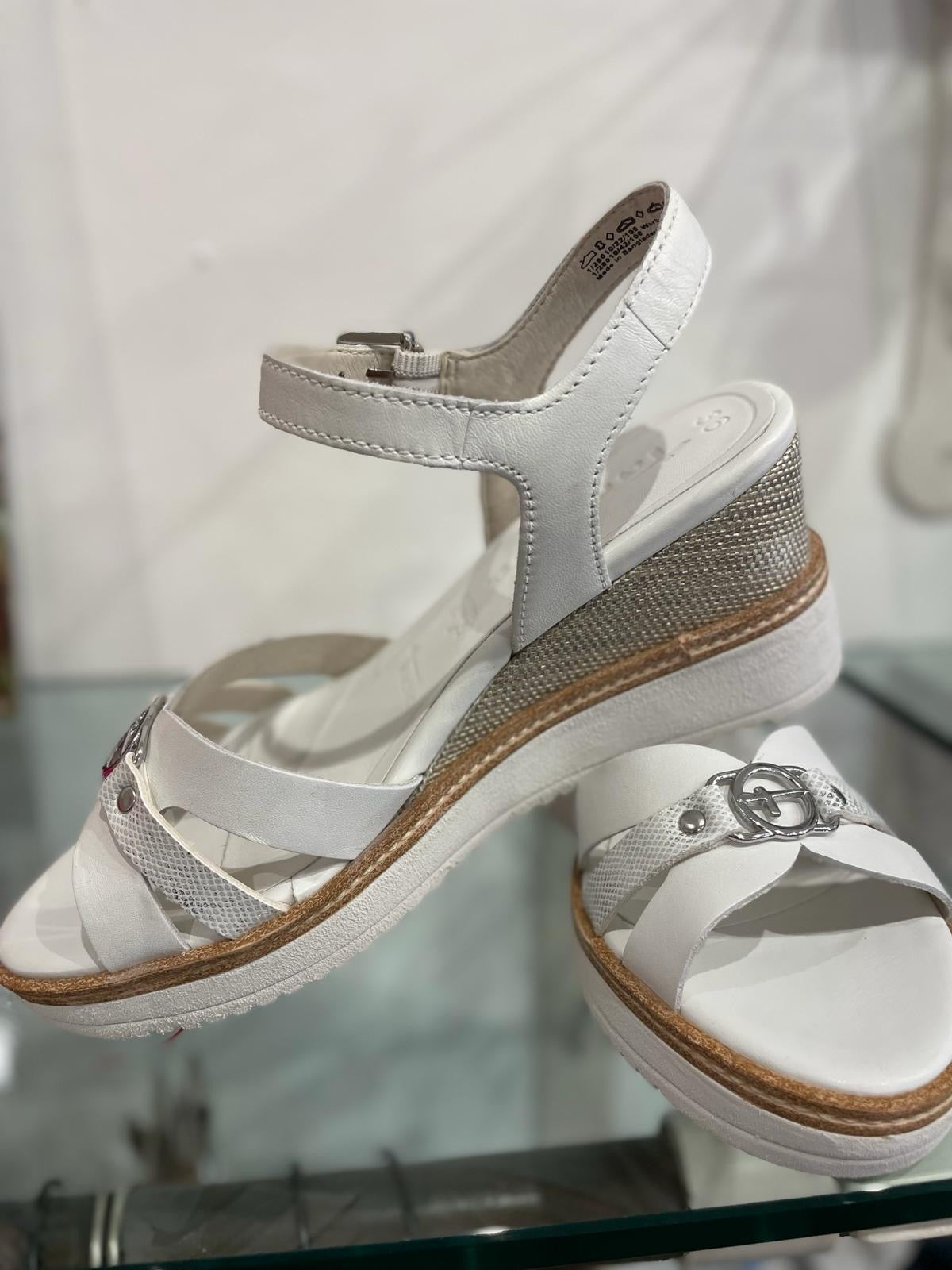 Step into summer with Tamaris' Platform Sandal in White! The comfortable platform heel provides all-day support while the sleek silver buckle detail adds a touch of elegance. Elevate any outfit and add a little height with these stylish sandals. Perfect for any occasion, from casual outings to dressy events.
