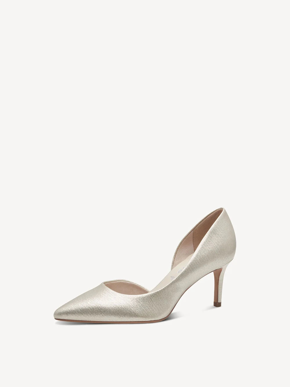 Elevate your style with the Tamaris Heeled Pump in Champagne. With its classic pointed toe and 70mm heel, this court shoe exudes glamour. The side cut out and TOUCH-IT technology ensure comfort while you make a statement. Plus, it's Vegan friendly.