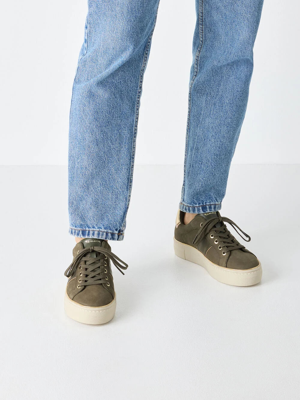 Step confidently into your day with these Tamaris sneakers—sporty, modern, and perfect for every adventure. Metallic accents add a fresh twist, while the round toe and thick, structured sole bring comfort to city strolls, parties, or those spontaneous coffee dates. Thanks to the removable footbed and COMFORT lining, you’ll stay comfy and cool from size 36 to 42. These low-cut sneakers celebrate your unique style—always ready for everyday luxe, urban chic moments, and new memories.
