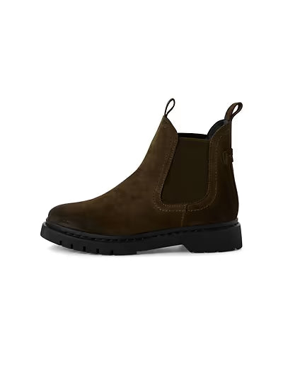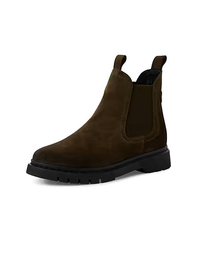 The Tamaris Suede Chelsea Boot in Olive combines timeless style with practical design. Featuring classic elasticated sides and convenient hoops on the front and back, these boots slip on effortlessly while providing a secure fit. Crafted in rich olive suede, they add a versatile touch to any outfit, perfect for both casual and smart looks. Comfortable and easy to wear, these Chelsea boots are a must-have for your footwear collection.