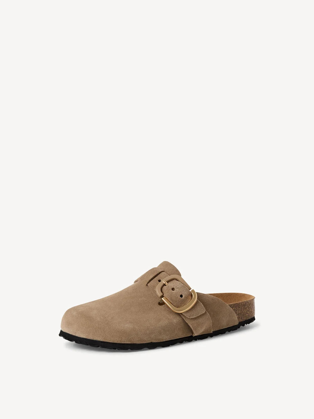 Experience the perfect fusion of style and comfort with the Tamaris Tam-27600-44 Taupe clogs. Crafted from premium suede with a supportive cork footbed, these versatile shoes elevate any outfit while pampering your feet. The modern flat design with textured sole and open toe transitions seamlessly from casual home wear to summer adventures. Don't miss the chance to add these boho-chic essentials to your collection – your feet will thank you!