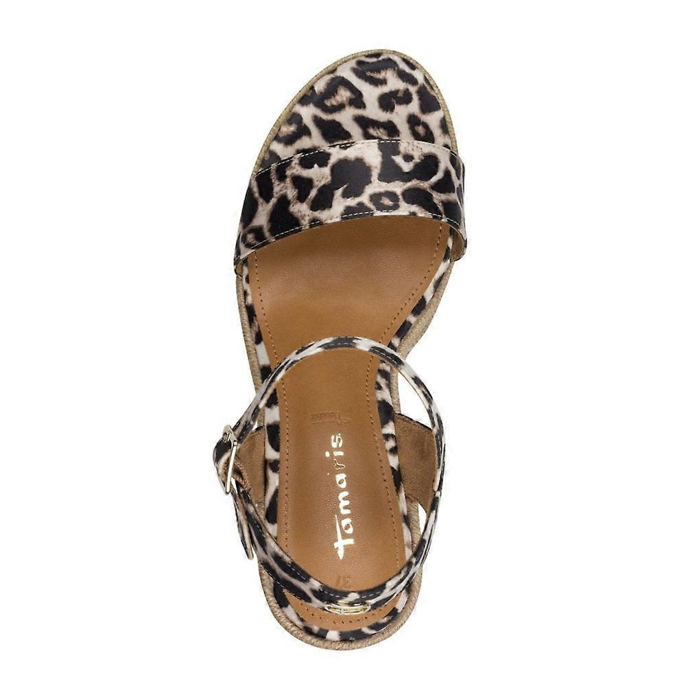 Make a bold summer statement with the Tamaris 28300 sandals in leopard print, combining striking style with all-day comfort. The soft TOUCH-IT footbed adapts to the natural shape of your foot, providing gentle cushioning and effortless support with every step. The 7.5 cm wedge heel adds elegant height while maintaining stability, making these sandals perfect for holiday adventures or evening outings. An adjustable buckle closure ensures a personalised fit, allowing your sandals to move with you while showcasing your individual style. Crafted with textile uppers and linings, these vegan animal print sandals bring a playful, fashion-forward touch to dresses, skirts, cropped trousers, or casual denim. Let the Tamaris 28300 leopard print sandals become your go-to choice for effortless elegance.
