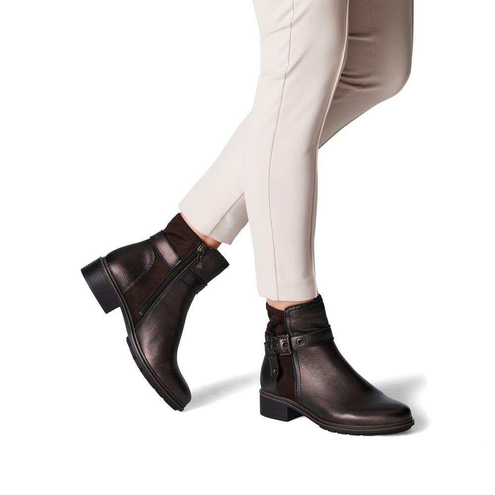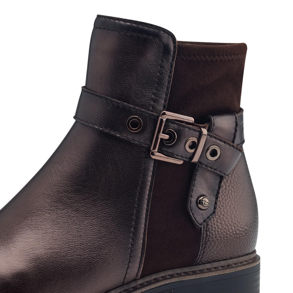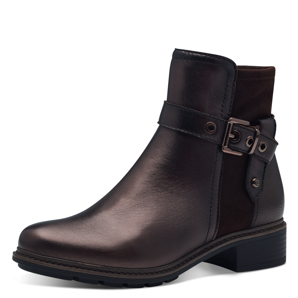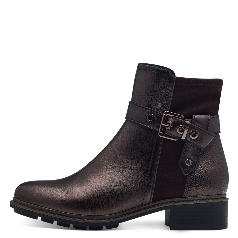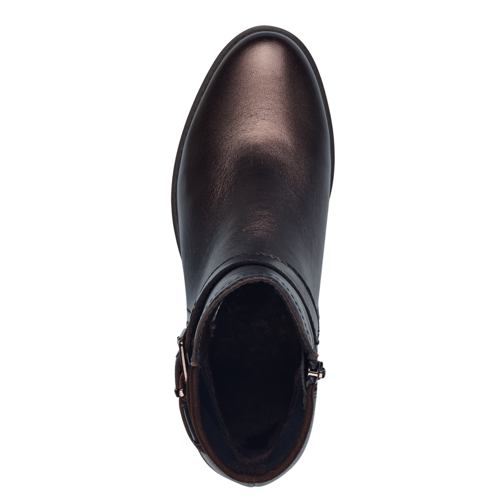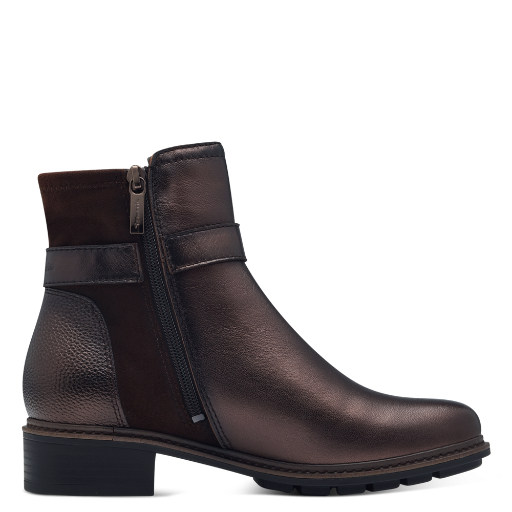Tam-M2542543 leather ankle boots with zip on side mocca metallic