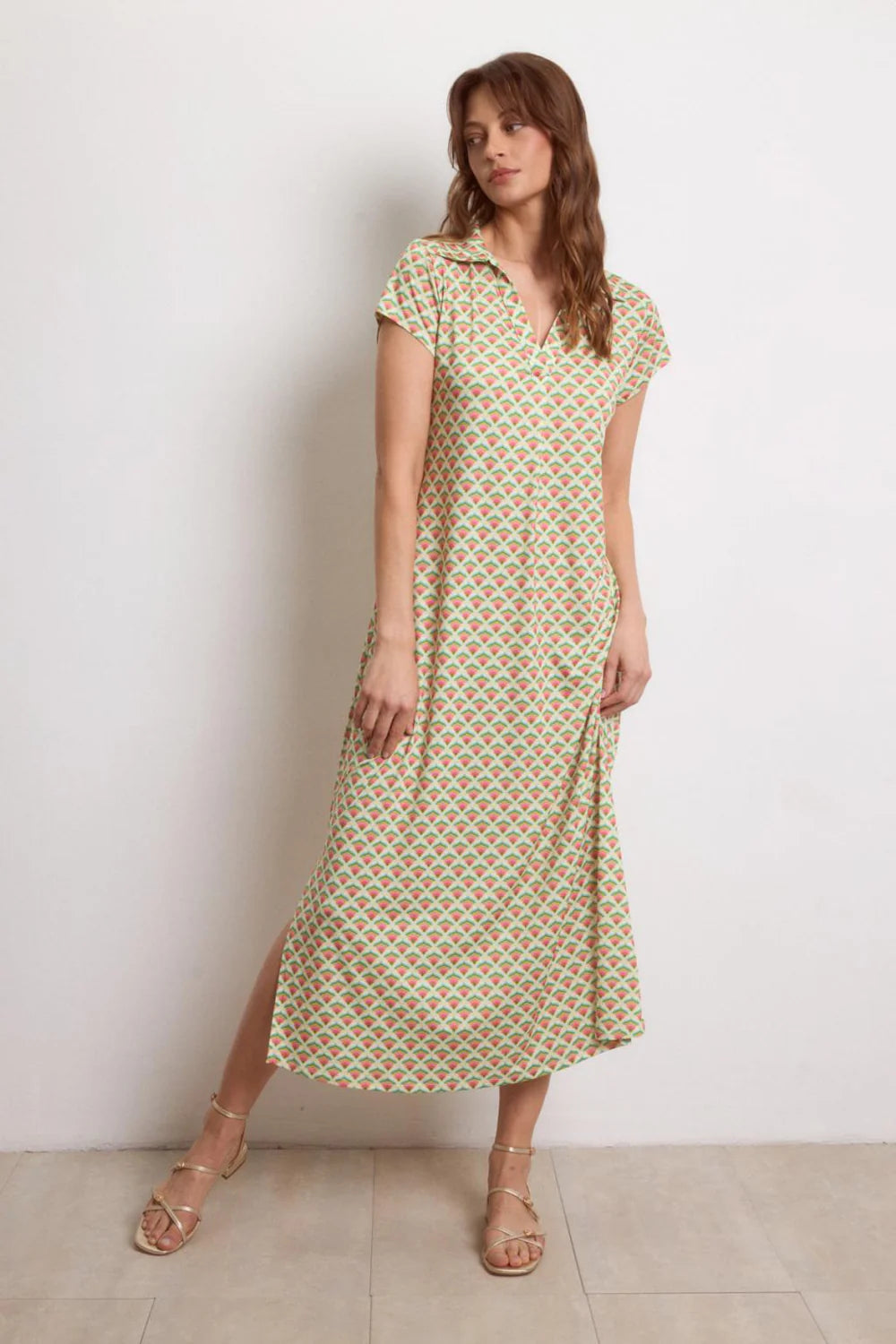 Elevate your wardrobe with this stunning Tinta Style Mariolu in captivating turq. This long printed knit dress features a flattering straight cut and notched V-neck that creates an elegant silhouette. Crafted from soft, lightweight fabric, it offers exceptional comfort for all-day wear. The short sleeves and straight hem provide a clean, sophisticated finish that transitions effortlessly from day to evening occasions. Make a statement with this versatile piece that combines timeless design with eye-catching color.