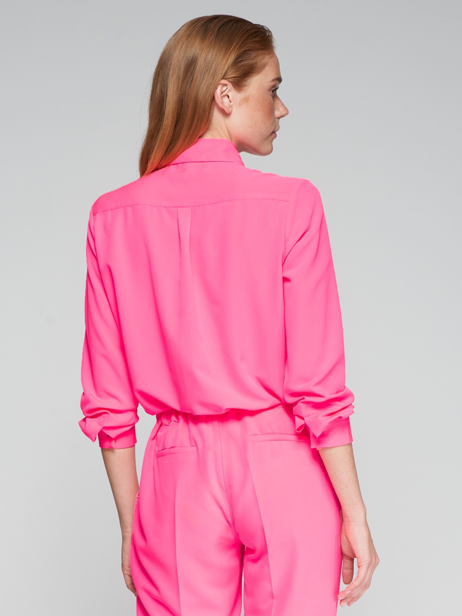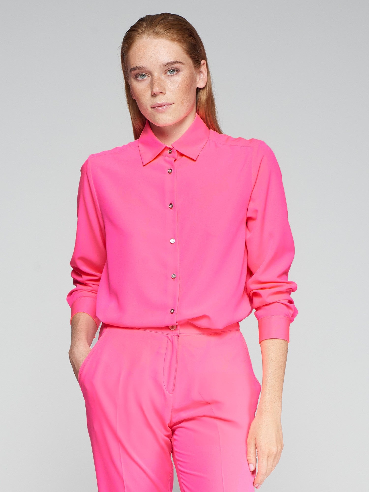 Elevate your wardrobe with the Rose Shirt from By Vilagalo. This fluid neon pink shirt adds a pop of color to any look. With a front button fastening and long sleeves with cuffs, this shirt offers both style and versatility. Available in size 38, perfect for every fashionista.