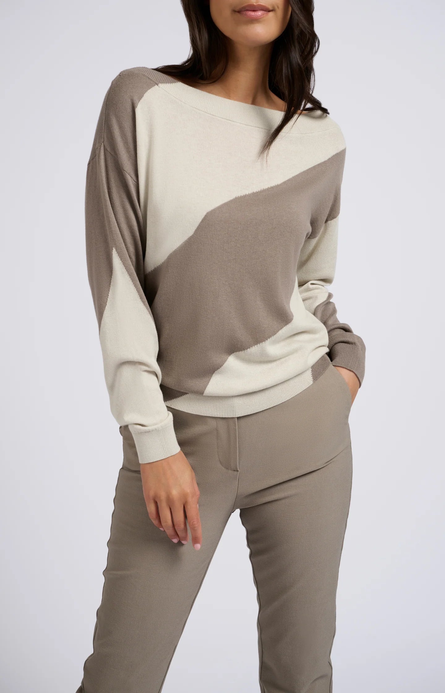 Ya--000368-407 long sleeve diagonal stripe sweater clay pebble grey
