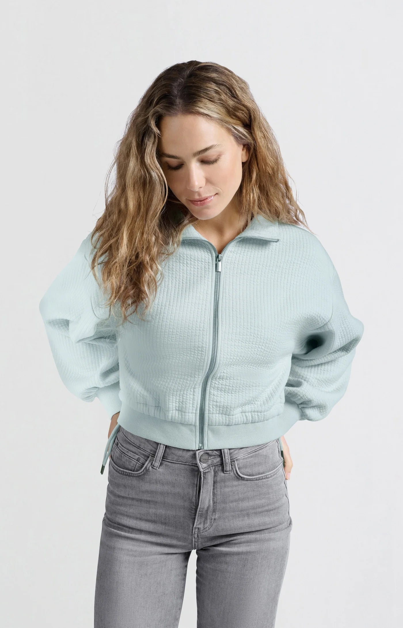 YAYA Ribbed Jersey Zip-up Sweater in Grey