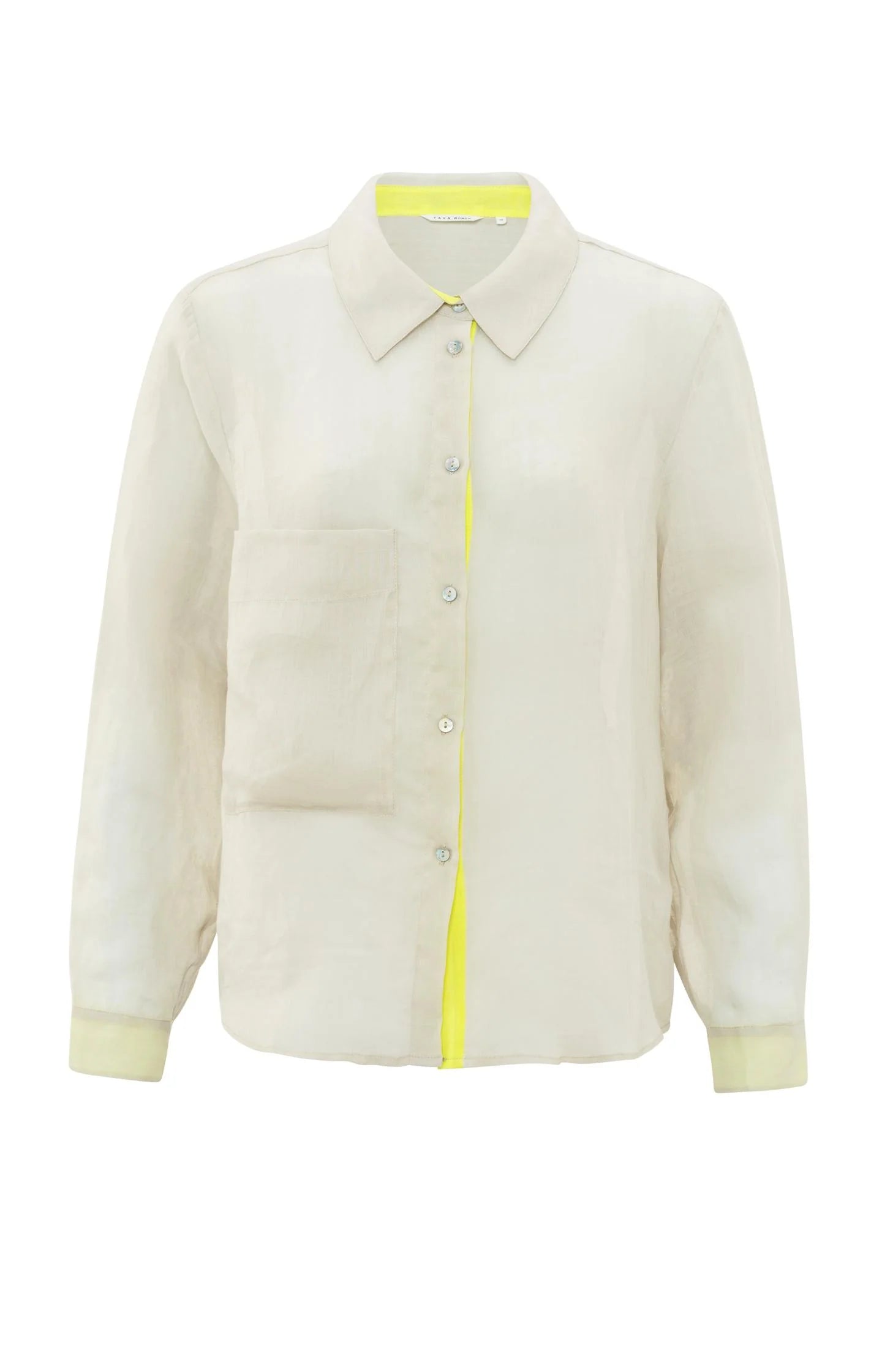 Ya-201098-407 long sleeve blouse with pocket neon yellow