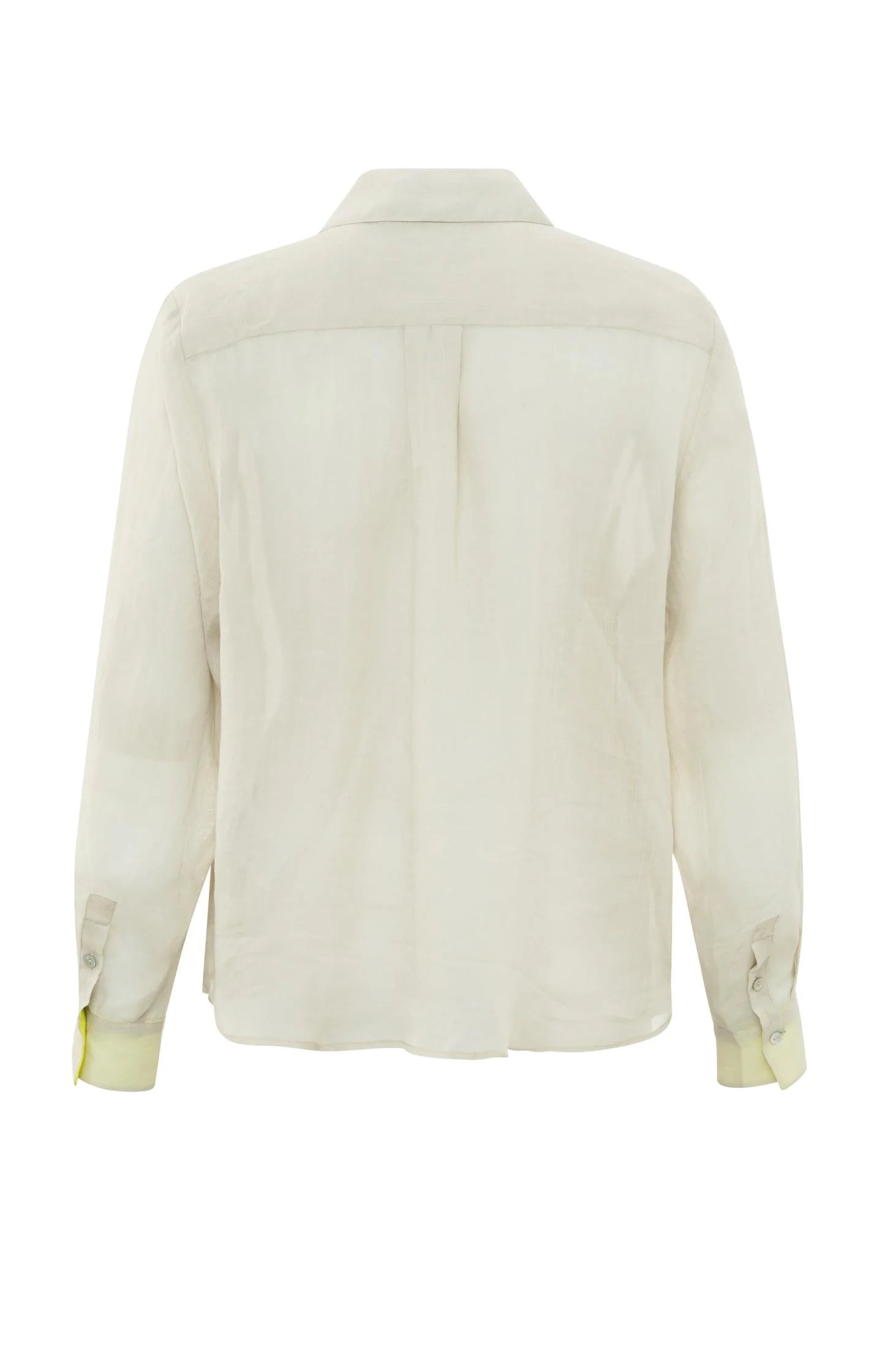 Indulge your senses with this Long-sleeve Blouse with Neon Detail from YAYA Women. With a classic collar and buttons, this blouse also features a convenient chest pocket and slight sheerness. Perfect for any occasion, it's a must-have for your wardrobe.